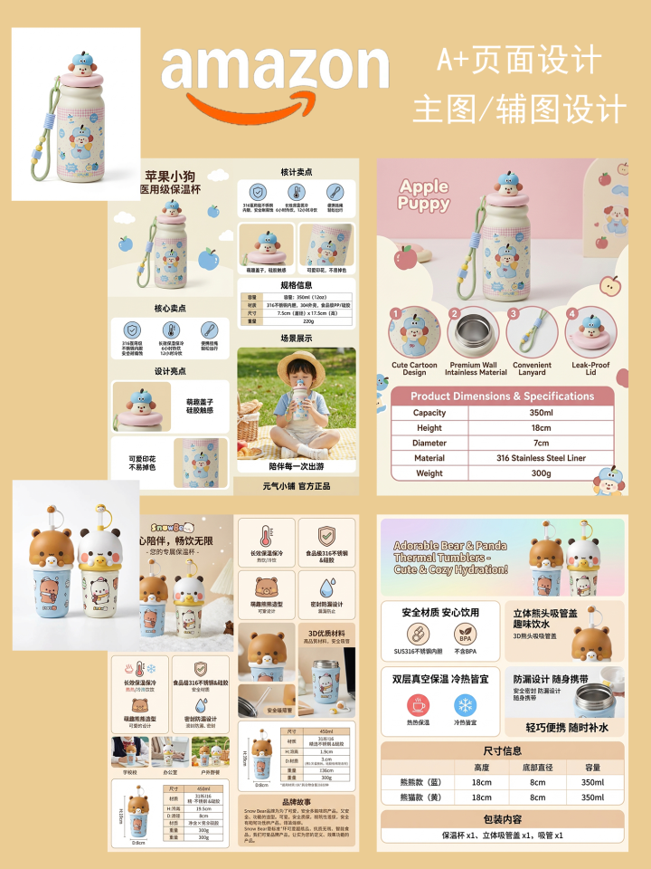 ●亚马逊:白底纯净主图+专业辅图,强调产品质量和功能特性